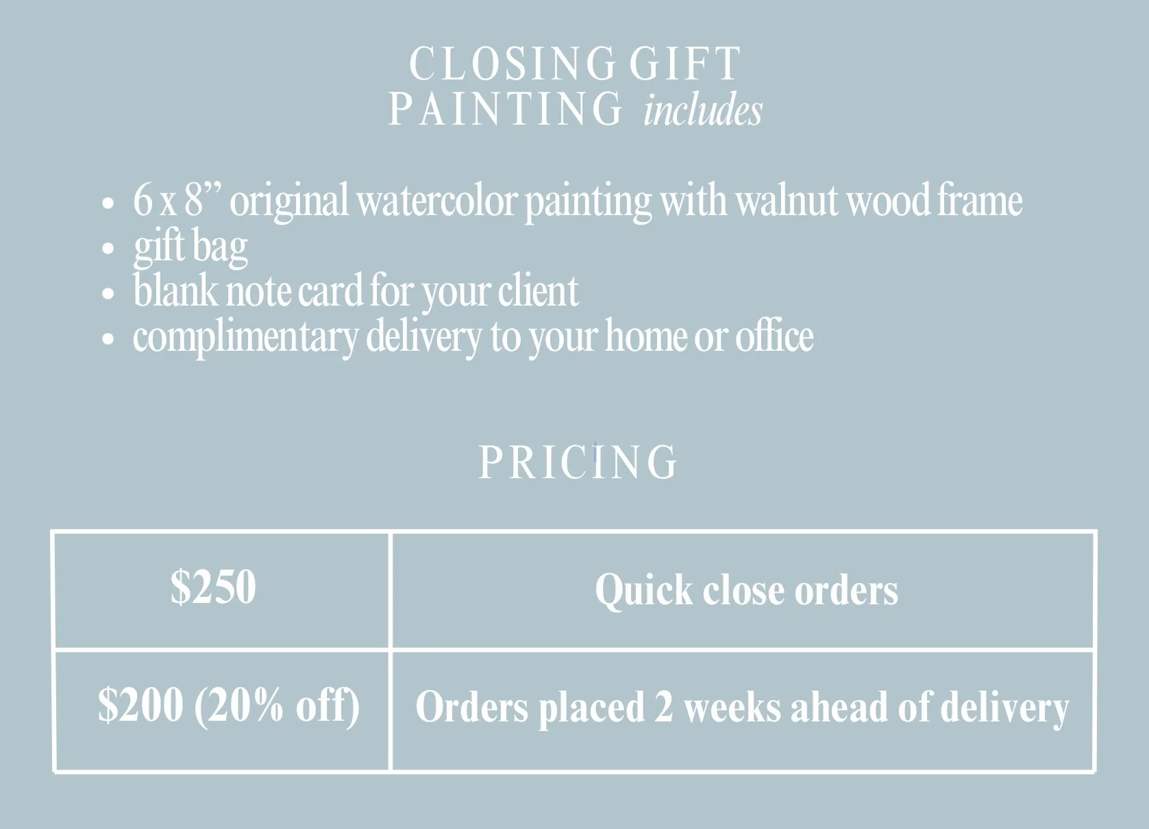 Hello agents! As you work hard advising your clients through the selling and buying process, Iām excited to support the final stage of your time with them by creating an extra special - dare I say unforgettable ;) - closing gift.